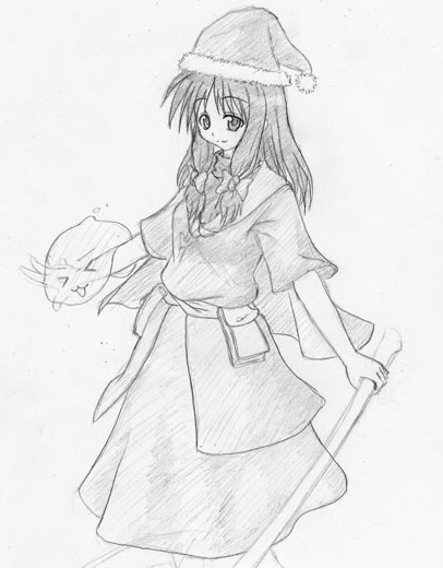 最近、マビノギの武器に宿る精霊の可愛さ&格好良さに魅了されているので、ためしに描いてみました。